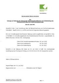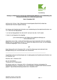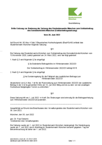 Satzung zur Änderung der Satzung des Studierendenwerks München Oberbayern zum Solidarbeitrag des Semestertickets München (Solidarbeitragssatzung) vom 30. Juni 2022 [bylaws regarding the amendment to the bylaws of the Studierendenwerk München Oberbayern regarding the solidarity fee for the semester ticket from 30 June 2022]