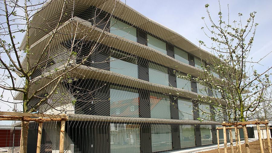 These halls of residence stands out due to their unusual construction. The apartments are reached via access balconies – a type of outside sheltered corridor. Instead of a railing, a network of thin steel ropes covers the sides of the open corridors. The outside walls of the rooms are made entirely of glass, making the rooms nice and bright. Students studying at Garching Campus can reach university in less than five minutes by bike.