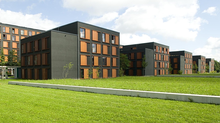 Our largest halls of residence in the western part of Munich offers room for almost 600 students. The main building, 250m long, plus the two-floor villas situated in front of it, form a lively campus with plenty to do and lots of opportunities to socialize. The halls offer rooms in shared flats as well as a large number of apartments with shared kitchen (room with your own bathroom). The location is in particular suitable for students studying at one of the universities in West Munich, such as Großhadern, the Biocenter Martinsried and the HM University of Applied Sciences in Pasing, which can all be easily reached by public transport.