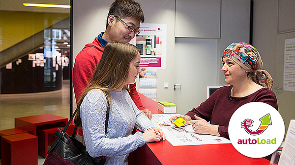 The Legic Card costs 12 euros. The Studierendenwerk München Oberbayern keeps 7 euros as a deposit; 5 euros will be available as initial credit on the card, so that you’ll be able to immediately start using your card. You can top up your Legic Card with cash (5-, 10-, 20- or 50-euro notes) at the service machines. Hold your card up against the card reader, follow the instructions on the screen and wait until your new balance is displayed. There is now also the possibility of topping up your card automatically by means of direct debit. More information on Autoload can be found here.