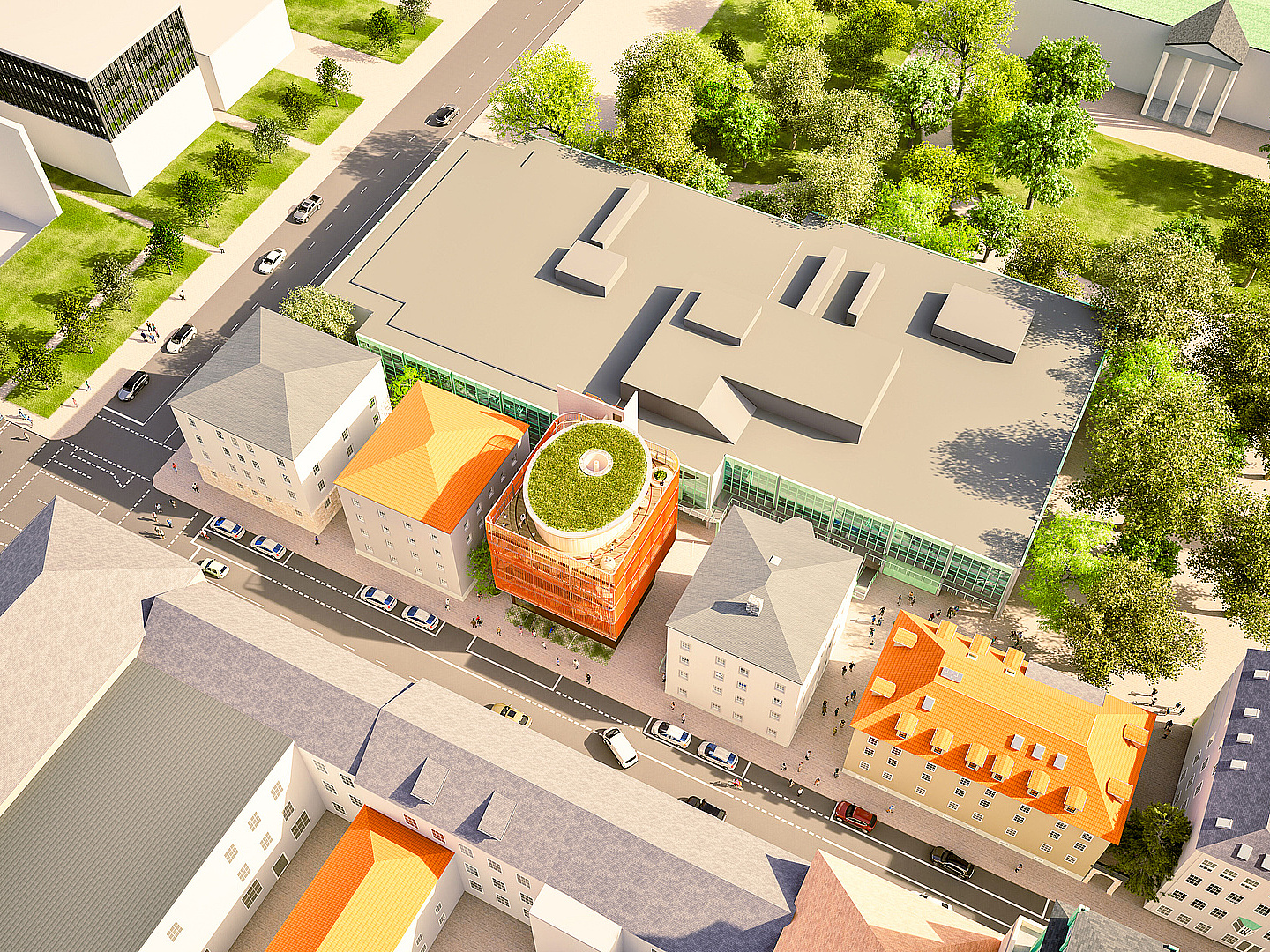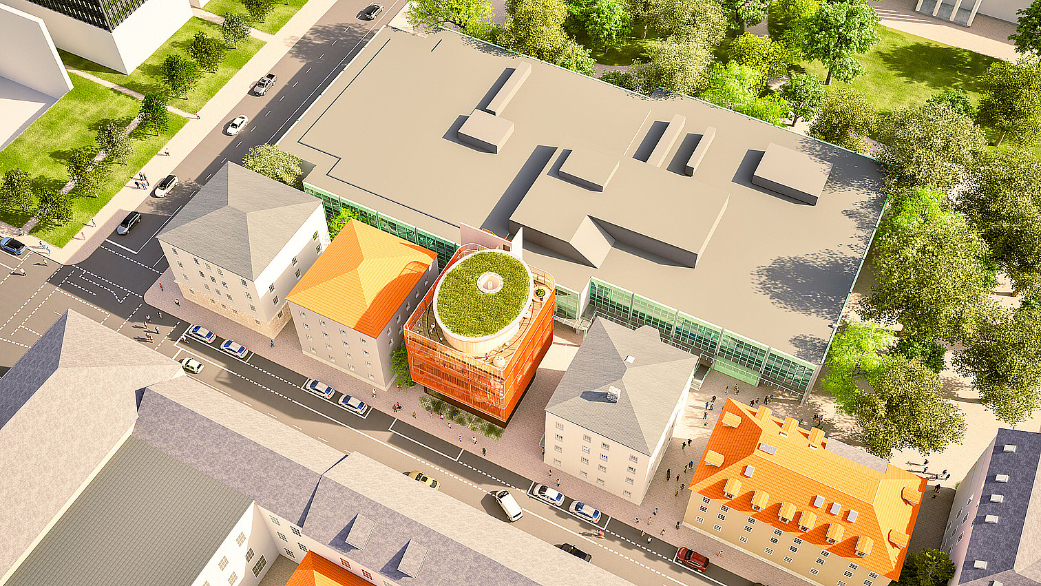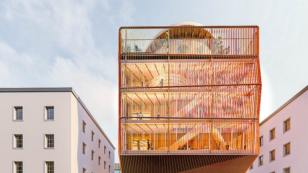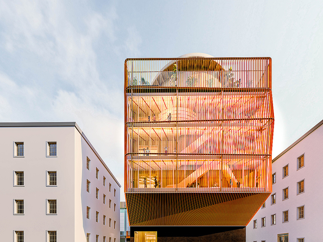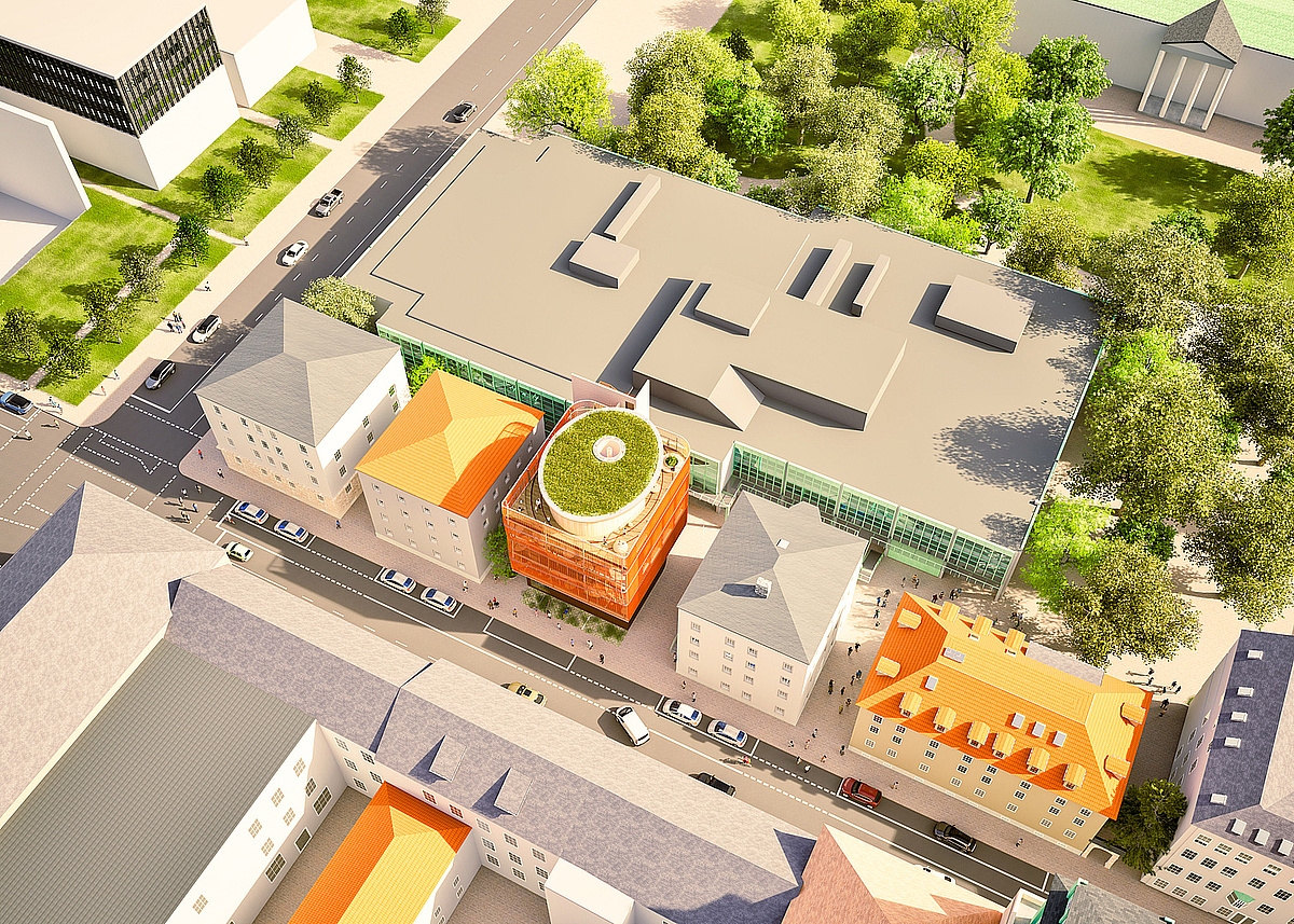 The Kinderoase an der TUM is a childcare centre with three groups: two kindergarten groups and one crèche group. Each group has its own floor with a group room, toilets, sleep or function room.