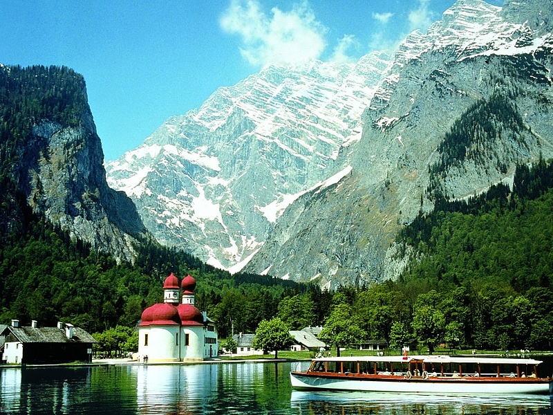 Der Königssee, der einzige fjordartige See in Mitteleuropa, liegt in der Nähe von Berchtesgarden in einer Landschaft wunderschöner Gegensätze mit imposanter Gebirgskulisse: über der Kirche Sankt Bartholomä türmt sich die Watzmann Ostwand als eine gigantische Felswand auf. Wir werden erst den Königssee bei einer Schifffahrt genießen und danach zusammen die umliegende Landschaft erkunden. In Sankt Bartholomä kann die gleichnamige Wallfahrtskirche Sankt Bartholomä besichtigt werden. Der Königssee ist ein von den besten Highlights in ganz Deutschland und dieser Trip bietet dir die Chance, die wunderschönen Bayrischen Alpen kennenzulernen.